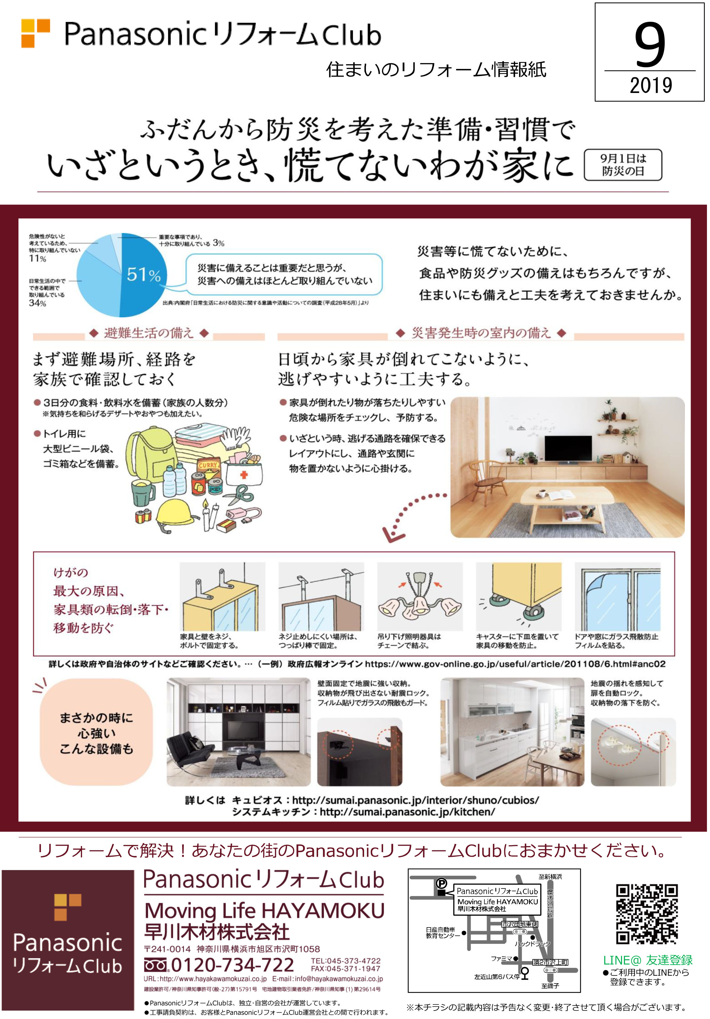 無料診断 無料見積り・相談 電話で見積り・相談 0120-734-722 【受付】10:00~16:00【定休日】日曜日 電話で見積り・相談 HOMEイベント・チラシチラシ2019年9月”暮らしの広場” 2019年9月”暮らしの広場” 暮らしの広場9月号「日頃の対策が大切です」 いろいろな災害時の対策があるようです。何か一つからでもはじめてみませんか。大型家具の転倒を防ぐことや、日常で使用する明かりを非常時にも使えるものに替えておくなど、特別な何かではなく、普段から目にするものや使うものを非常時にも使えるものに替えておくと、心配事が減っていくかもしれません。ここちよいと感じることができる空間をつくるのに、私たちがどういうお手伝いをできるか?いつも皆で考えています。一度ご相談ください。スタッフ一同お待ちしております。 一言 平時に防災について考えておく 備考 いざというときにあわてないように イベントへのお申し込みはこちらから 必須お名前 例: 山田 太郎 必須電話番号 例: 045-000-0000 必須イベント名 例: 完成見学会 必須参加希望日 例: 1/1 10:00-12:00 必須参加人数 例:2名 任意メールアドレス 例: t_yamada@sample.jp 任意郵便番号 住所検索 例: 123-4567 任意住所 例:神奈川県横浜市**** 任意お問い合わせ内容 ※お急ぎの方は、 直接 0120-734-722(10:00~16:00)まで、お電話下さい。 例:○月○日の○○○イベントに参加希望です。 ※相談内容は個人情報保護法に適用いたします。 24時間以内に回答を心がけておりますが、相談内容等によって、 2〜3日かかる事もございますが御了承下さい。 お電話でもお気軽にどうぞ! 内容をご確認の上、よろしければ下記の「入力内容を確認する」ボタンを押して下さい。 個人情報利用目的 ・お客様のご要望に合わせたサービスを提供させていただくための各種ご連絡。 ・お問い合わせいただいたご質問への回答のご連絡。 尚、お客様から収集する個人情報は弊社の定めるプライバシーポリシーに則って厳重に管理いたします。 プライバシーポリシー 弊社では、利用者のみなさんの個人情報がきちんと守られることを、何よりも大切にしています。また、利用者ご本人への事前の許可なしに第三者に個人情報を配送作業以外に開示することは絶対にいたしません。 どんな些細な事でも結構です。ご相談、お見積もりなど、お気軽にご連絡下さい。上記メールフォームからご連絡いただくか、電話にてご連絡下さい。 必須マークがついている項目は必ずご記載下さい。(株)、(有)や丸囲み数字等の機種依存文字は、文字化けの原因となりますので、使用しないようお願いいたします。