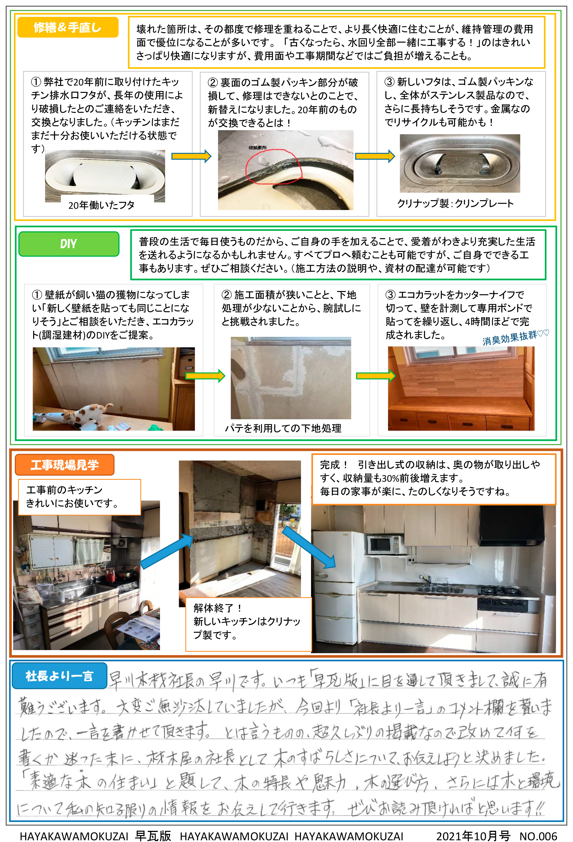 ご自宅の中で修理が必要な個所、台所や洗面所などは、非常時に大切な設備となります。商品を買って取り置く防災もありますが、自宅で非常時にも生活ができるという考え方もひとつではないでしょうか。