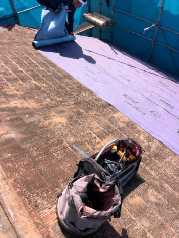 屋根の下地材を貼り終わりました。