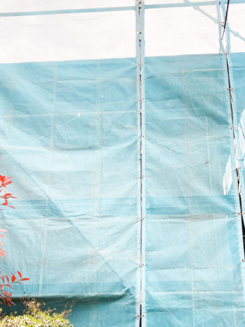 飛散防止などを目的で、足場にシートを張ります。